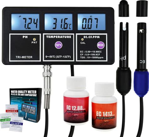 5-In-1 Water Quality Multi-Parameter PH EC CF TDS (Ppm) Temperature Test Meter Backlight, Wall-Mountable Rechargeable Continuous Monitor Tester, Aquariums Hydroponics Pool Fish Tank Pond Drinking