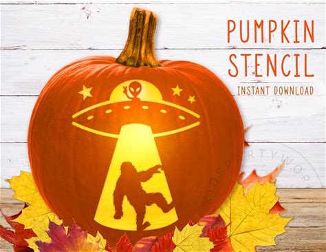Alien Pumpkin Stencil, Bigfoot Printable Stencil, Jack O' Lantern, Pumpkin Carving Template, Alien Spaceship, Halloween Stencil, Digital
