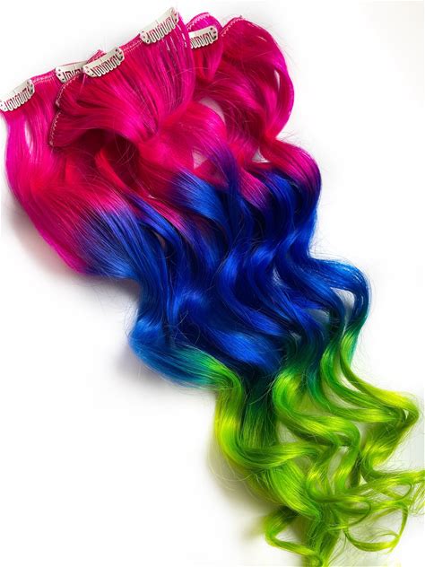 Neon Rainbow Human Hair Weave, Pink, Blue And Green Tape In Hair Extensions, Bundle,Clip In Hair Extensions, UV Mermaid Hair