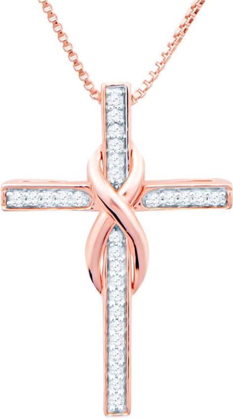 Diamond Cross Necklace Infinity 1/10 CTTW Sterling Silver - 18 Inch Chain