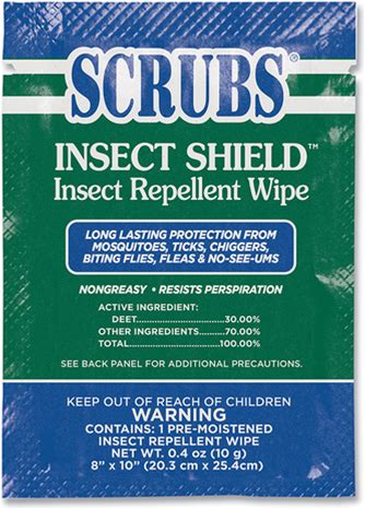 SCRUBS Insect Shield Insect Repellent Wipes 8 in X 10 in 0.4 Oz Single Premoistened Packets 91401