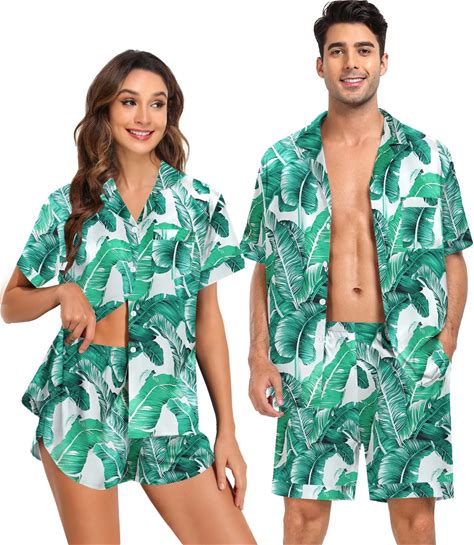Matching Pajamas Sets Couple Button Down Nightwear Women & Men Short Sleeve Sleepwear 2 Pieces Loungewear