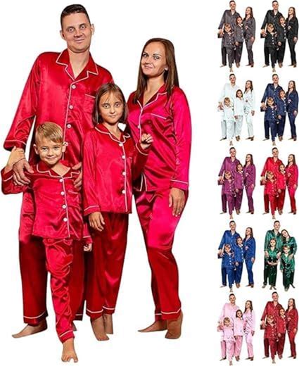2025 Family Satin Christmas Pajamas Sets Solid Silk Xmas Pjs Matching Sets Soft Sleepwear For Mens Womens Adults Kids Kid Red