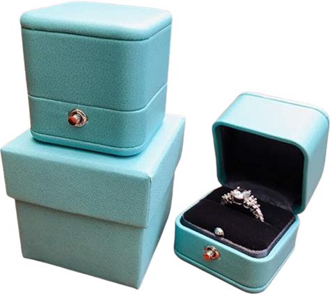 Turquoise Luxury Vintage Design Soft Leather Ring Box Wedding Ring Box For Proposal Engagement Presentation Gift Box Turquoise Teal Blue