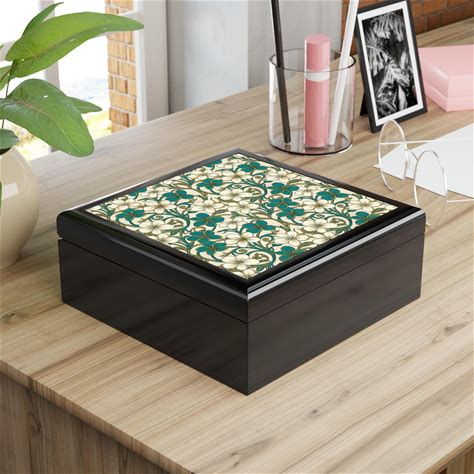 Elegant Floral Jewelry Box With Turquoise Floral Design, Gifts, Decorative Storage, Anniversary, Keepsake Organizer Gift