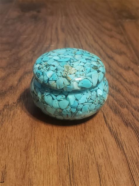 Handmade Bone Inlay Turquoise Pattern Round Box: Jewelry Box