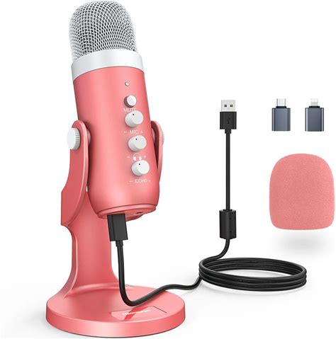 Haomuren USB Condenser Microphone Pink Studio Recording Mic For PC Mac Computer Phone Gaming