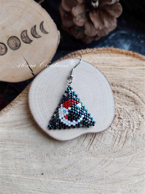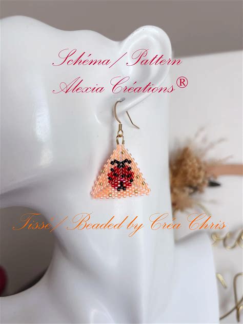 Little 3D Peyote Triangle Pattern, 10 Rows , Ladybug. Lucky Earrings.