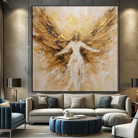 Golden Wing Painting 100% Handmade White Angel Wings Oil Painting Handmade Textured Feather Painting Acrylic Abstract Oil Painting For Wall Decor Living Room Modern Artwork