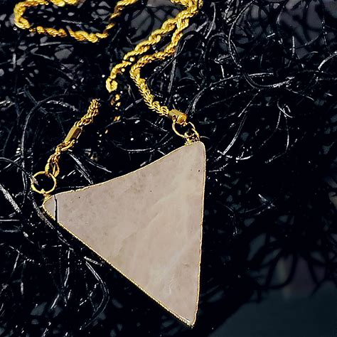 The BERMUDA TRIANGLE Necklace In GOLD Rose Quartz- May Birthstone Witch Boho Statement Crystal Gemstone Jewelry Necklace Women's Jewelry