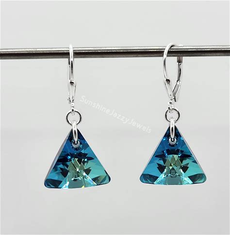 Sterling Silver Swarovski Crystal Bermuda Triangle 6628 Earrings 2 Sizes Choose Leverback Or Earwire