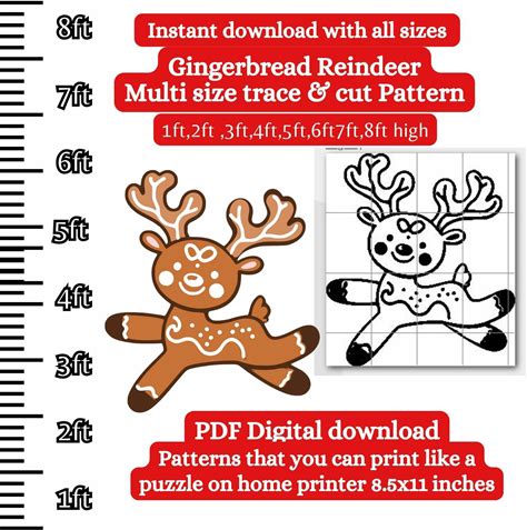 Life Size Gingerbread Reindeer Pattern PDF Template ,Printable Trace And Cut, Christmas Silhouette Template, Stencils, North Pole Svg Dxf