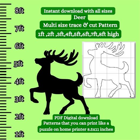 1ft 5ft Elf Cleaning Reindeer Antlers , Christmas Enlarged Pattern, Printable Pdf Stencil Template, Woodworking,Cardboard Cutout
