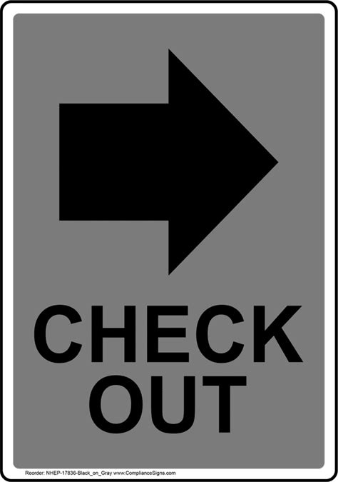 Portrait Gray Check Out [Right Arrow] Sign, Plastic | Size: 7X5, NHEP-17836-Black_On_Gray | By Compliancesigns