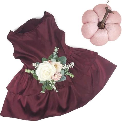 House Of Furbaby Wedding Flower Dog Dress | The Rustica | Dog Wedding Dress | Satin Dog Dress (Wine, Small (7-10 Lbs))
