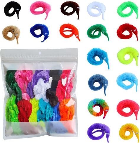 48Pcs Magic Twisty Worm Wiggly Twisty Fuzzy Worms On A String Magic Worm Toy...