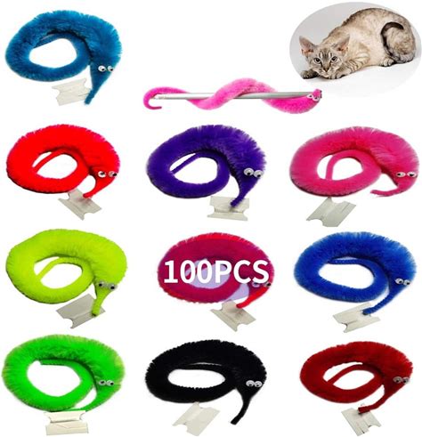 SHENGSEN 100 Pieces Fuzzy Worm Toys String Pets Fuzzy Worms On String Bulk Tr...