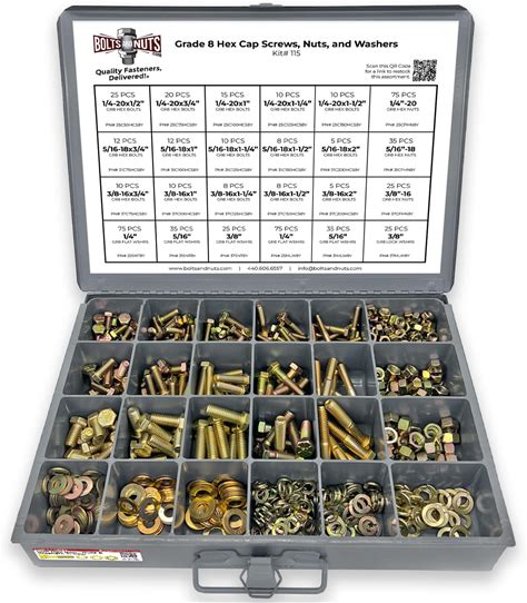 Grade 8 Hex Cap Bolts Screws, Nuts, Washers, Lock Washers Assortment Kit - 574 Pieces!