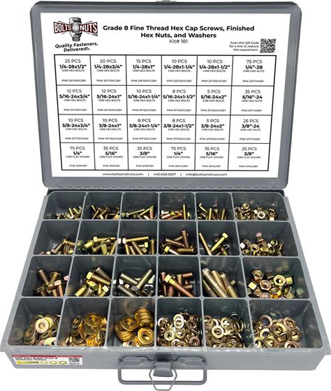 Fine Thread Grade 8 Hex Cap Bolts, Finished Hex Nuts, Washers, Lock Washers Metal Assortment Kit Containing 570+ Pieces!