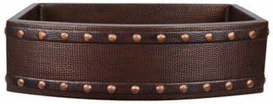 30" Hammered Copper Rounded Apron Front Single Basin Kitchen Sink With Barrel Strap Design
