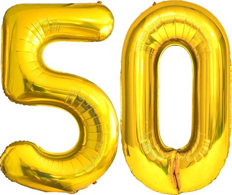 FIROMI 50 Number Balloons Gold Big Giant Jumbo Huge Foil Mylar 50 Balloon Numbers For 50th Birthday Party Anniversary Events Decorations 40-Inches