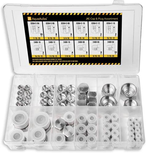 64 Pcs. JIC 37° Flare Thread Cap & Plug Assortment Kit, Seal Adapter Set For Hydraulic Hose Tube And Pipe, SAE AN Fittings, Galvanized Carbon Steel
