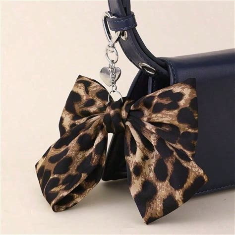 1Pc/European And American Bow Keychain Bag Clasp Heart Pendant Valentine's Day Gift Leopard Pattern Dark Color Women's Hair Accessory,