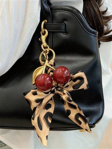 1Pc Cherry Pendant Decor, Leopard Print - Red Cherry, Gold Lobster Clasp, Women Keychain, Suitable For Handbag, Backpack, Wallet - Valentine's Day Gift, Birthday Gift, Anniversary Gift - Elegant Bag Charm, Wallet Pendant, Han
