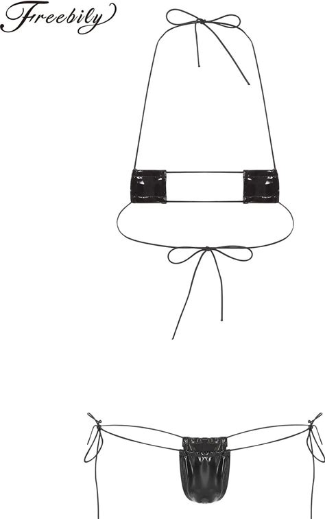 Women Sexy Halter Neck Swimsuit Small Bar With Adjustable G-String Throng Micro Mini Bikini Set 2 Pieces