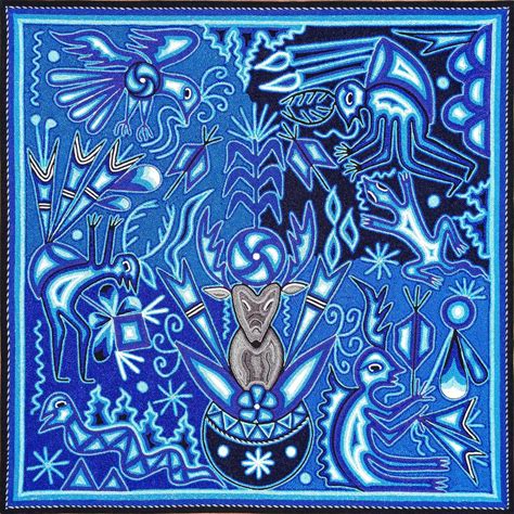 Huichol Yarn Art Wall Decor - 24X24 Inches - Mexican Handmade Thread Painting - Wixarika - Xukuri Deer God
