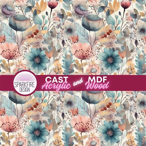 12" X 19" Laser Ready Patterned Acrylic Sheet, Watercolor Flowers, Unique Pattern For Laser Cutters