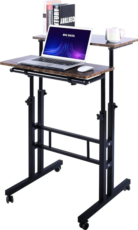 Mobile Computer Desk For Small Space, Adjustable Height Rolling Work Desk, Portable Standing Writing