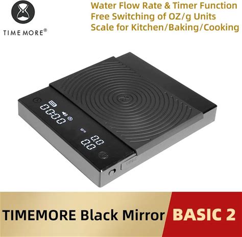 TIMEMORE Basic 2 Black Mirror Pour Over Coffee Scale Flow Rate Display Auto Timer Digit Kitchen Food