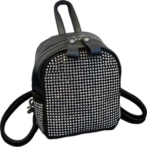 Studded Backpack Purse Mini Metal Studs Trendy Studded Backpack For Women Bling Punk Rock Rhinestone Daypack Daily Party (Black Silver)