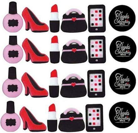 Sprinkle Deco 12 Count Girl Movie Hollywood Glam Diva Purse Lip Stick Shoes Edible Sugar Cake Cupcake Decorations Toppers With 12 Stickers