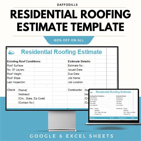 Residential Roofing Estimate Template, Roofing Cost Calculator, Contractor Quote Sheet, Google Sheets & Excel Roofing Form