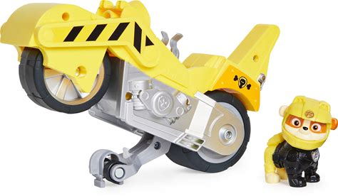 Paw Patrol, Moto Pups Rubbles Deluxe Pull Back Motorcycle Vehicle With Wheelie Feature And Toy Figure