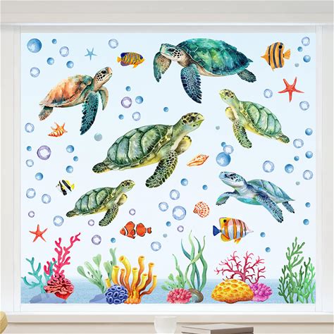 wondever Under The Sea Turtle Fish Window Clings Ocean Animal Sea