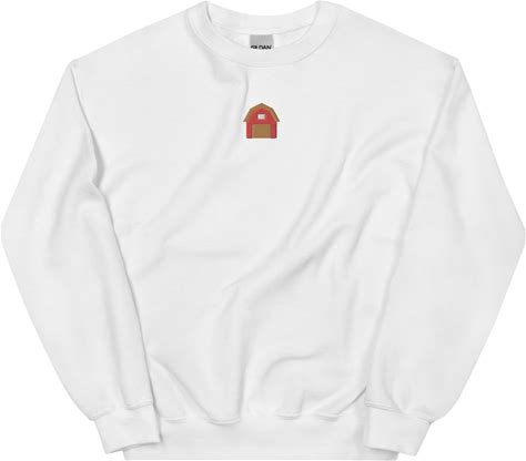Simple And Cozy Threads Embroidered Unisex Red Barn Sweatshirt, White / L