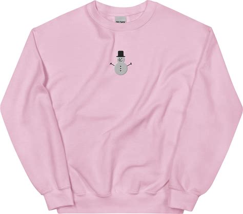 Simple And Cozy Threads Embroidered Unisex Snowman Crewneck, Light Pink / L