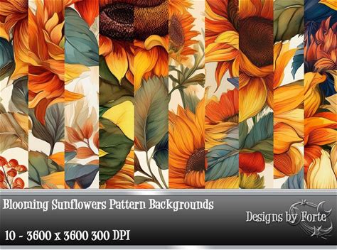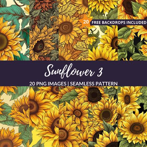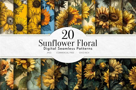 Sunflowers Seamless Patterns, Printable Digital Paper, Commercial Use, JPEG Format, Instant Download