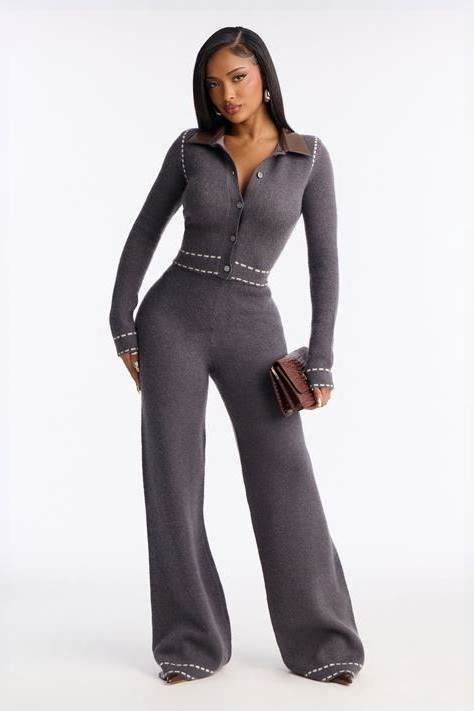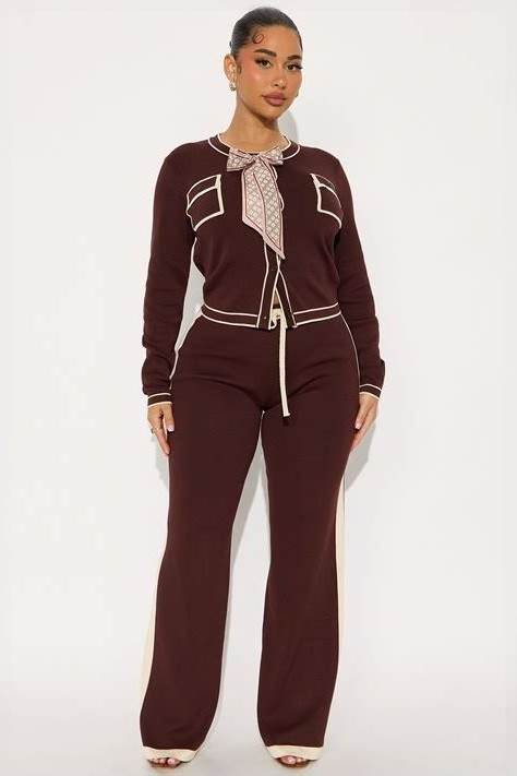 Sweater Pullover Sweater Straight Leg Pant Set In Burgundy, Size M For GNO/Date Night | Fashion Nova