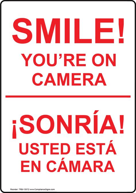 Smile! You're On Camera Bilingual Sign, Plastic | Size: 7X5, White, TRB-13572 | By Compliancesigns