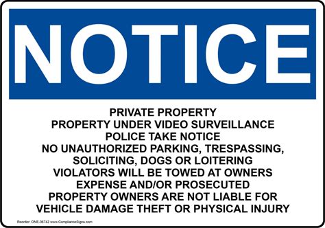 OSHA NOTICE Private Property Property Under Video Surveillance Sign, Plastic | Size: 7X5, ONE-36742 | By Compliancesigns