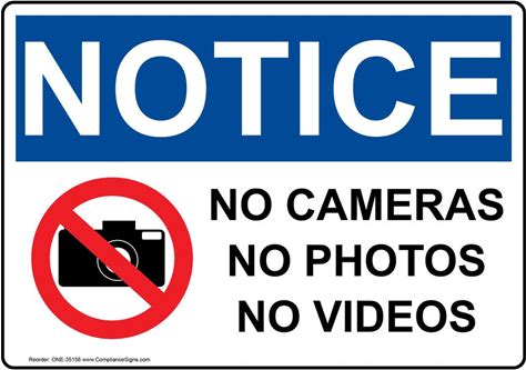 OSHA NOTICE No Cameras No Photos No Videos Sign With Symbol, Plastic | Size: 7X5, ONE-35158 | By Compliancesigns