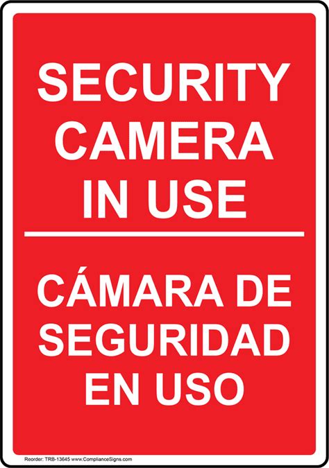 Security Camera In Use Bilingual Sign, Plastic | Size: 7X5, Red, TRB-13645 | By Compliancesigns