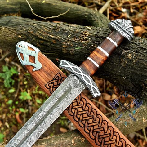 Damascus Viking Sword With Durable Metal Scabbard | Custom Hand Forged Historical Swords | Home Decorative