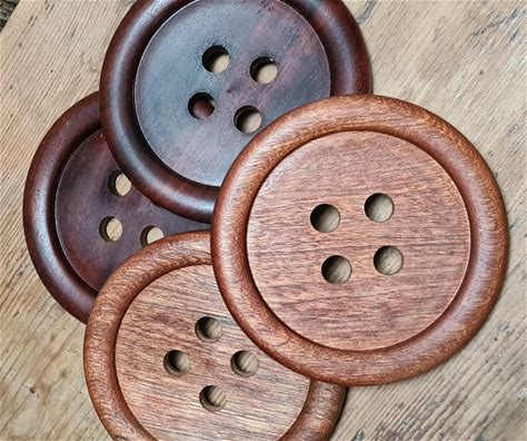 Handcrafted Wooden Button Coaster, Unique Housewarming Gift