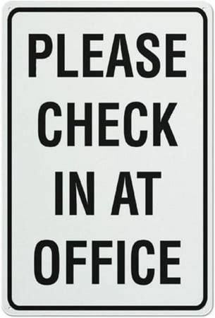 Please Check In At Office Sign Sign, 8 X 12 Grade Reflective Sheeting Rust Free Aluminum, Weather Resistant, Waterproof, Easy To Mount