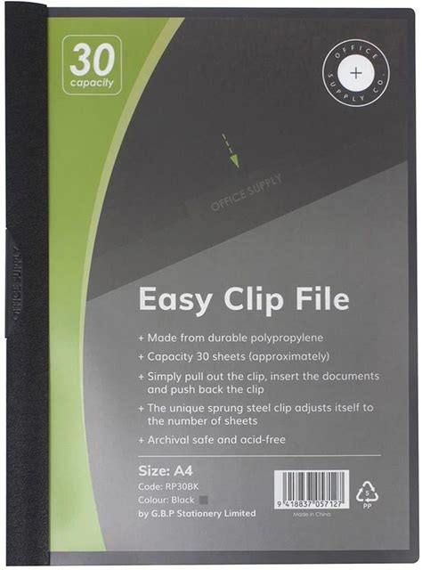 OSC Clip Easy File A4 30 Sheet(BLACK)